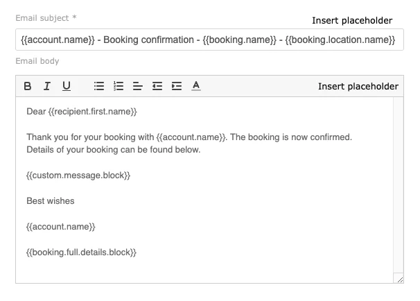 You can fully customise the text of every email and harness the power of automatic personalisation with Jezzam's "placeholder" feature. Smart placeholders ensure that the relevant information is included in emails, automatically inserting specific data like the customer name and booking details.