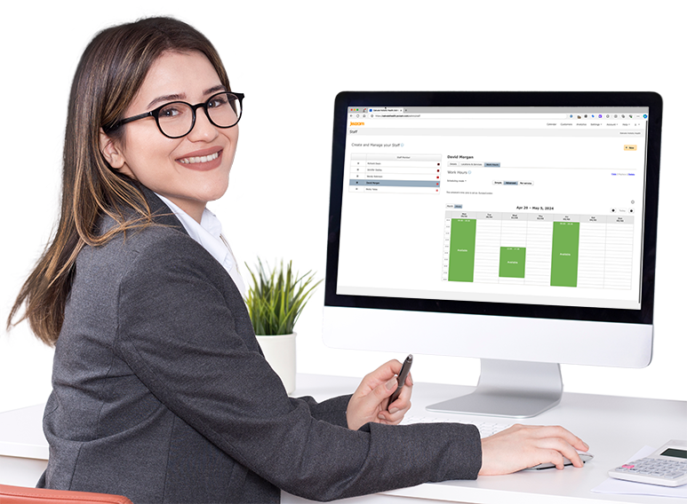 Whether you're solo or lead a team, Jezzam simplifies your scheduling tasks. Easily manage staff schedules, vacation time and resource availability. Choose from three distinct scheduling methods to fit your business (simple, advanced, or per-service).